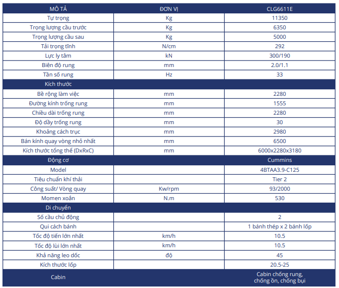 1. Giới thiệu về các ưu điểm của lu rung 2 cầu CLG6611E