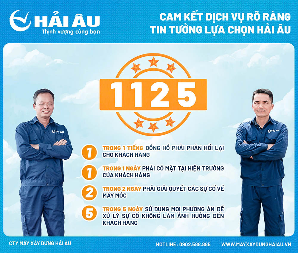 Máy xây dựng Hải Âu cam kết cung cấp dịch vụ bảo hành tận tình cùng hỗ trợ kỹ thuật nhanh chóng cho khách hàng. Với đội ngũ kỹ thuật viên chuyên nghiệp cùng hệ thống chi nhánh rộng khắp, khách hàng có thể yên tâm rằng mọi vấn đề sẽ được giải quyết nhanh chóng. Thời gian bảo hành tối đa là 24 giờ kể từ khi nhận được yêu cầu, đảm bảo rằng máy luôn ở trạng thái hoạt động tốt nhất.